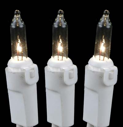 Novelty Lights presents this commercial grade 22 gauge White wire Christmas mini light set that has 100 lights spaced 6" apart and is 50 feet long. Each set comes with 2 replacement bulbs, 1 flasher bulb, and extra 2 fuses.