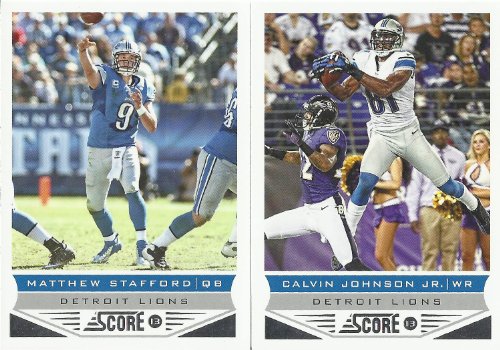 Detroit Lions 2013 Score Factory Sealed 11 Card Team Set Including Matthew Stafford, Calvin Johnson, Theo Riddick, Ryan Broyles, Mikel Leshoure, Brandon Pettigrew, Ndamukong Suh, Reggie Bush, Darius Slay, Corey Fuller and Ezekiel Ansah.