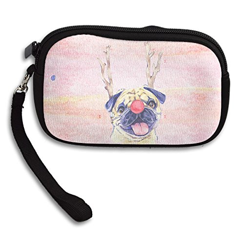 -. Title : Christmas Pug Dog With Antlers Watercolor Small Money Wallet Coin Purse Pouch Bag