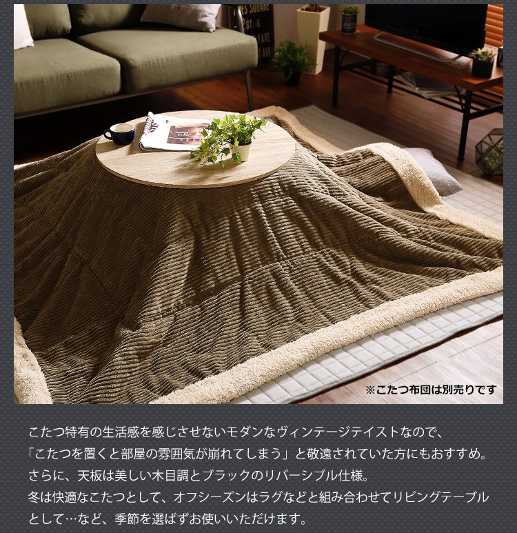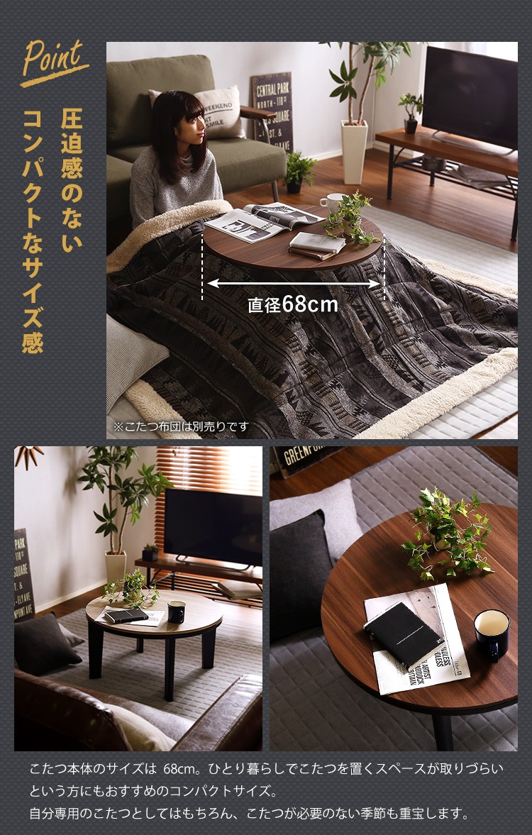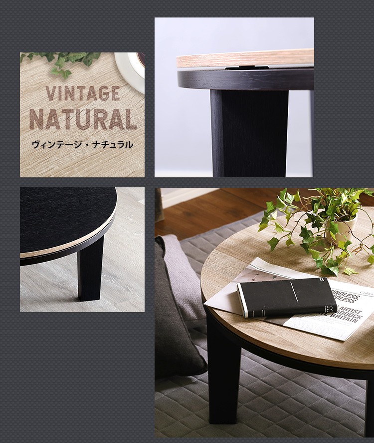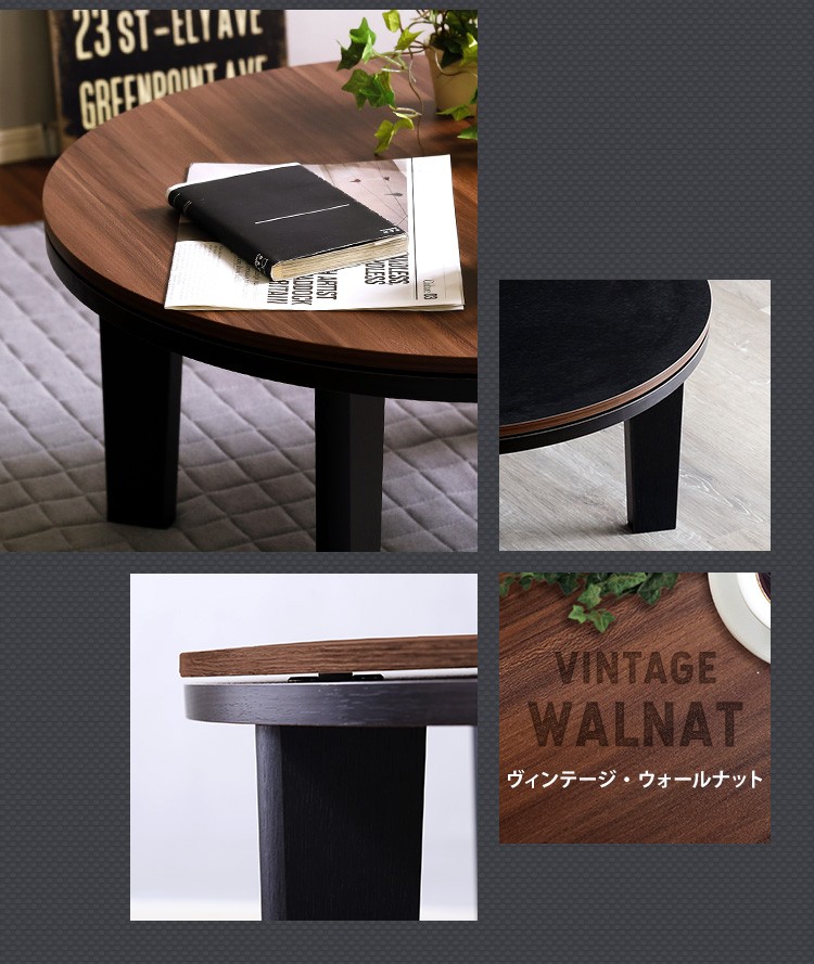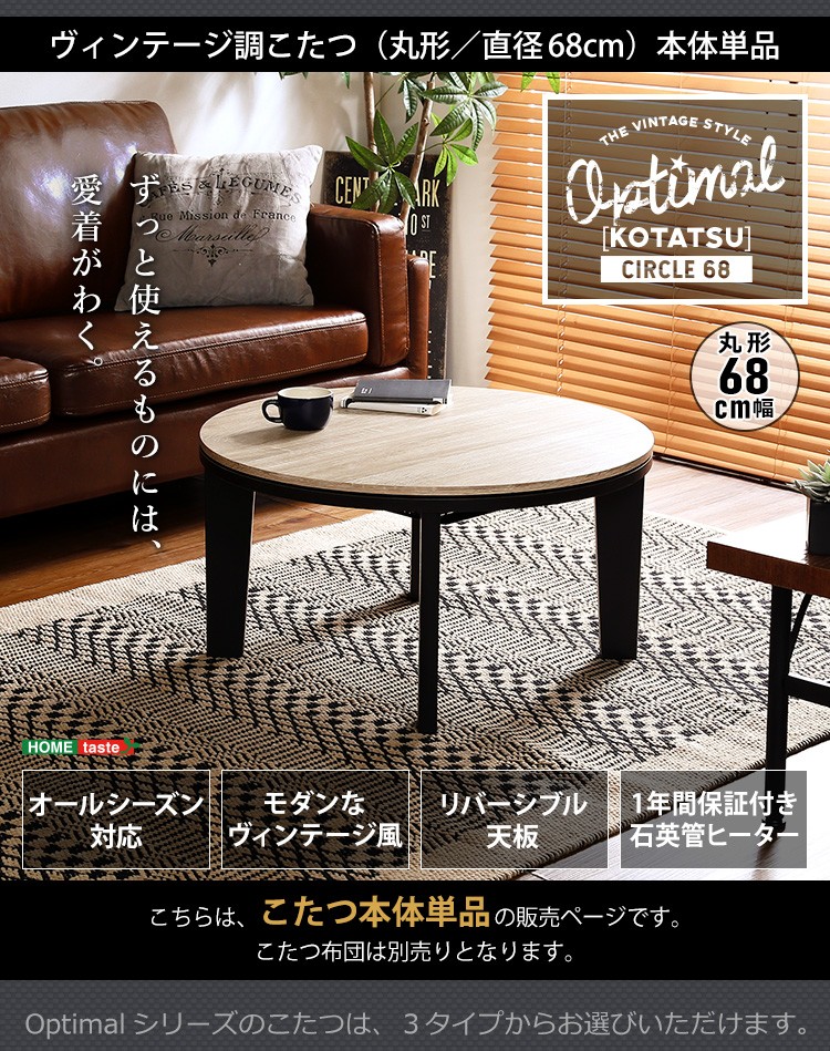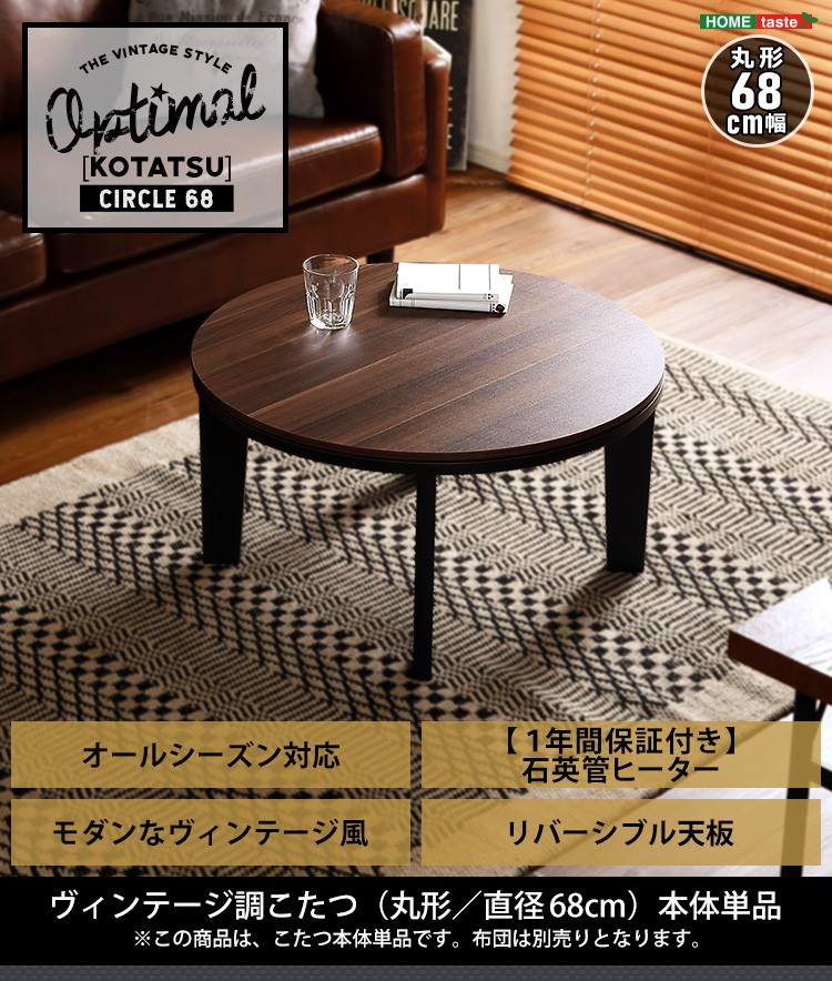 カジュアルこたつ ヴィンテージタイプ 石英管ヒーター付 68cm幅 丸型 テーブル本体単品【OPTIMAL -オプティマル-】シリーズ [CIRCLE 68]