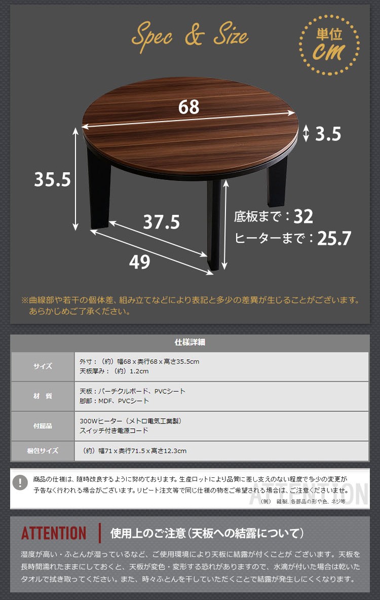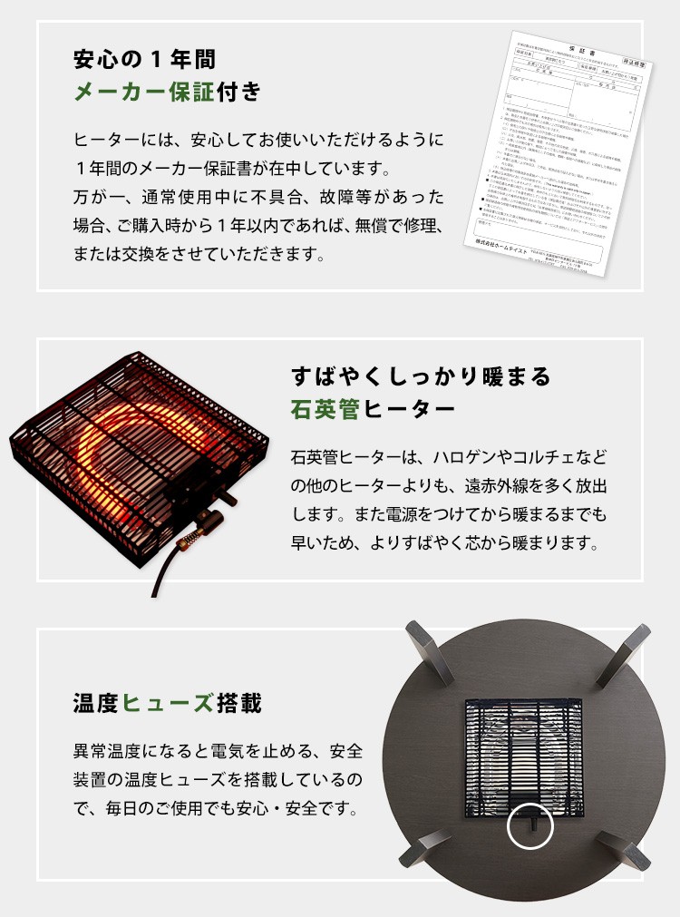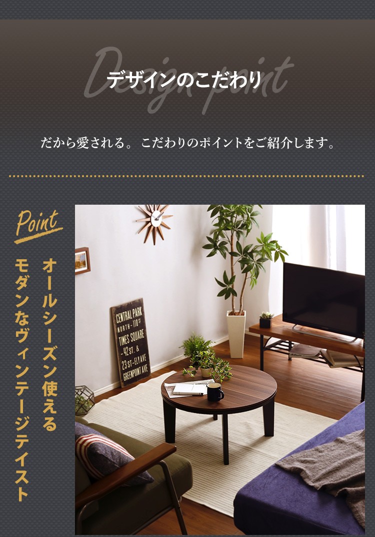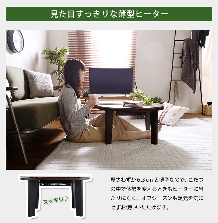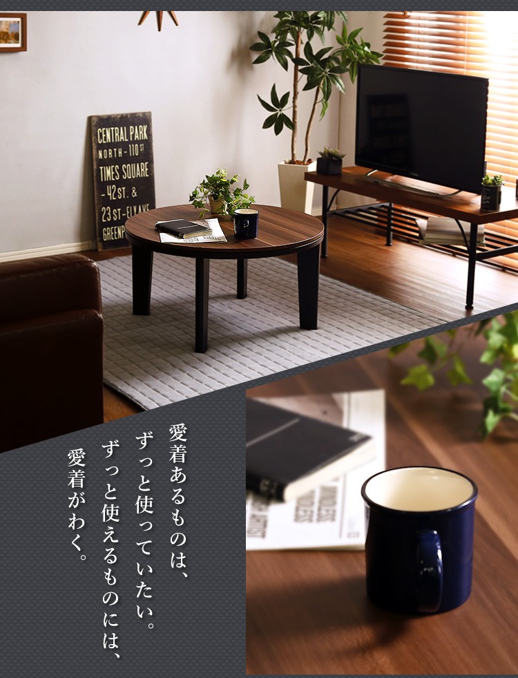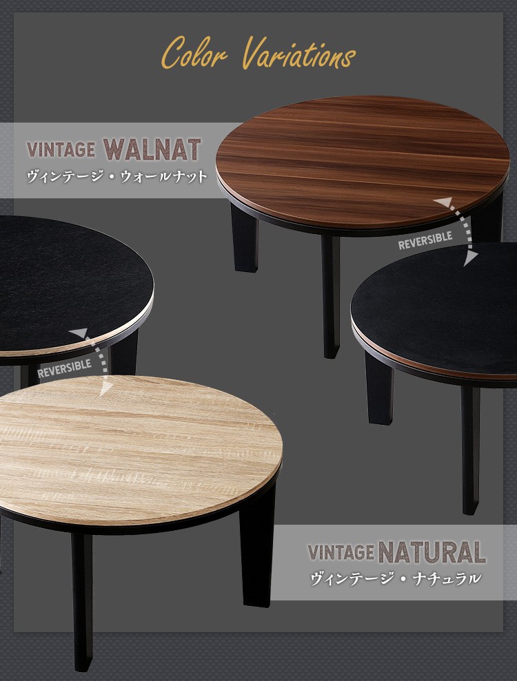 カジュアルこたつ ヴィンテージタイプ 石英管ヒーター付 68cm幅 丸型 テーブル本体単品【OPTIMAL -オプティマル-】シリーズ [CIRCLE 68]