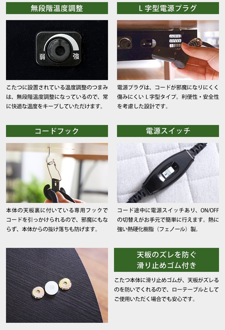 ・無段階温度調節機能、温度ヒューズ付