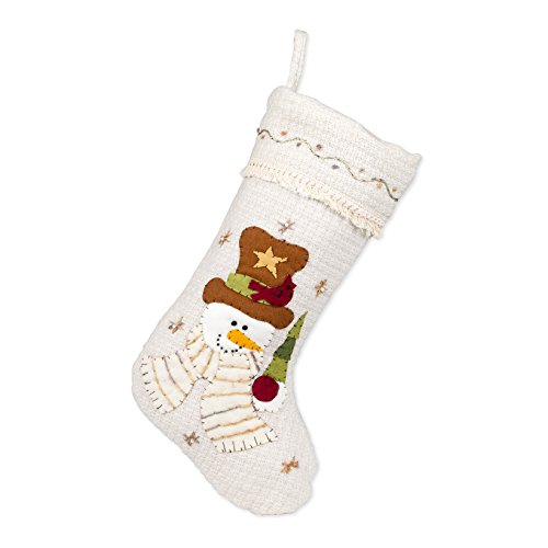 19 inch Snowman Face Applique with Tree on Ivory Embroidered Cuff Christmas Stocking