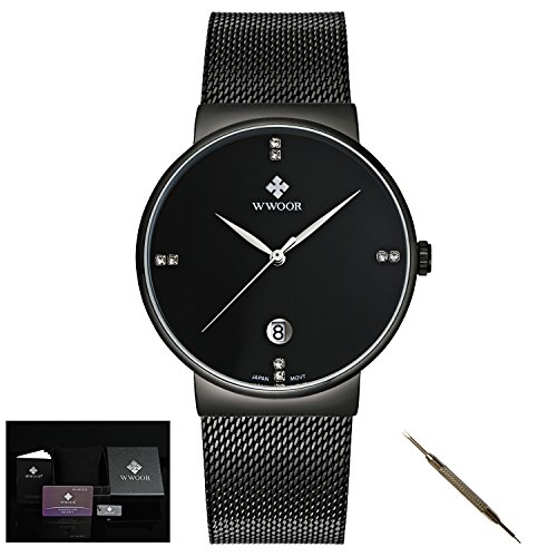 [SIZE] Sleek Case ,Diameter: 40 mm,Case Thickness: 9.5 mm,Black plated mesh strap,comfortable for wearing.