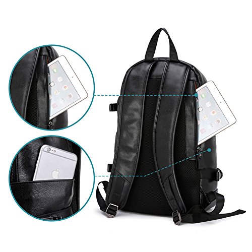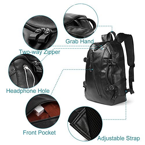 -. Brand : 2-FNS -. Department : mens -. Feature : Size: 13'' L, 5.1'' W, 16.5'' H. Suitable for a 15 inch laptop / Material: Durable PU Leather; Fabric lining / Two-way Zipper- Quite smooth to use and extremely durable / Top carry handle and easily adjustable shoulder straps / Comfortably holds an laptop, iPad, A4 size book and other small things -. ProductGroup : Apparel -. ProductTypeName : LAGE -. Title : Men's Vintage Backpack School Bag Travel Satchel PU Leather Book Bag Rucksack