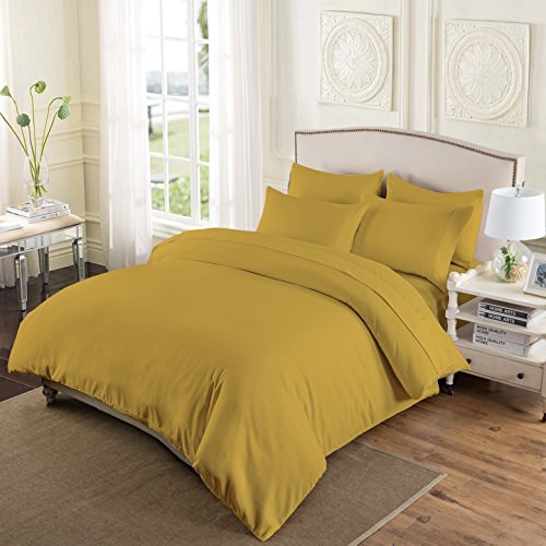 SOHO LifeStyle Ultra Soft Microfiber Solid Color 4 Pieces Sheet Set, California King, Spicy Mustard