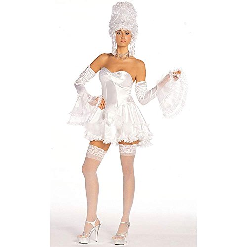 -. Binding : Apparel -. Brand : Shirley of Hollywood -. Color : White -. Department : womens -. Feature : Comes in two adult sizes\nWhite spandex and lace strapless dress and matching sleevettes / Elegant in white, this Miss Antoinette is the picture of sexy French royalty / Adult Sexy Marie Antoinette Costume -. PackageQuantity : 1 -. ProductGroup : Apparel -. ProductTypeName : ACCESSORY -. SKU : SH7492 -. Title : Sexy Miss Antoinette Costume