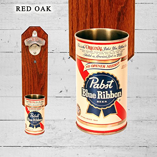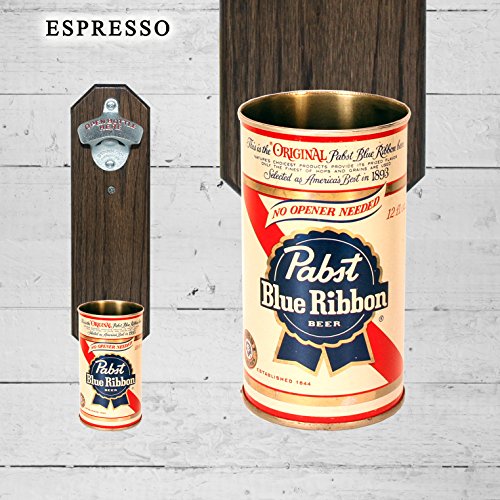 -. Title : Wall Mounted Bottle Opener with Vintage Pabst Blue Ribbon Beer Can Cap Catcher