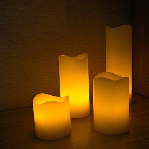 The origin of Running shop Catherine, 18, had a gift for her mother in 1920, when she was in the bag, and she made a candle for her mother to buy a gift for her mother. A neighbor saw that it was like, persuaded Catherine to sell her to her. With this first income, she bought some wax to make two candles, one for her mother, and the other for sale. This is the birth of Runing's candle. With the development of the times and the reform of the process, we have become rich and varied Product information - Package:4 per box - Candle color: beige - Light color: yellow - Candle Dimensions:1.97"x1.91"/1.97"x2.95"/1.97"x3.94"/1.97"x5.9" - Energy saving, can be used over and over again - Long life battery included, can last up to 72 hours, much longer than traditional tealights. - Uses CR2032 button cell batteries that are inexpensive and readily available. - LED bulbs have an average life span of 200.000 hours. - Each value bulk pack contains individually wrapped LED candles Not include battery. - There is a timer, time control is 6 hours. - On/Off switch for easy operation and Remote control. Operation steps: Steps1. Open the battery compartment at the bottom of the candle. Steps2. Loaded on the CR2032 button cell batteries. Steps3. Close the battery cover and open the ON/OFF switch. Note: Our product does not contain the battery. 0