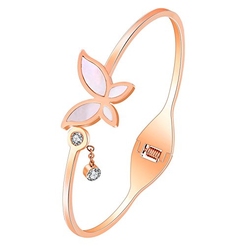 -. Feature : Size- 32 mm diameter of case with 7.28 inch band / Quartz-Japanese quartz movement with analog display / Trendy-double dials with 12 stick indices+shell inlay butterfly bangle / Waterproof-withstands splashes or brief immersion in water, but not suitable for bathing,swimming,diving / Gift-makes a great gift for birthdays,Mother's Day,Chiristmas,Valentine's Day or just to make females enthusiasm smile