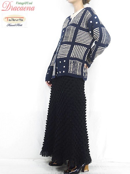 Ladies ブランドTalbots タルボット カラー紺・アイボリー メール便不可 コンディション★★★ モデル身長158cm 素材ラミー55%・コットン45% 表記サイズM スタッフコメント左前裾、右袖シェルボタン欠損箇所あり。 実寸サイズ 着丈 61 cm 身幅 56 cm 肩幅 45 cm 袖丈 52 cm ※ウエスト・ヒップ以外は平置き採寸
