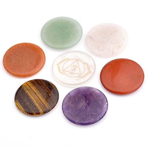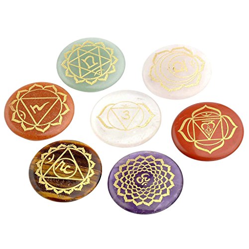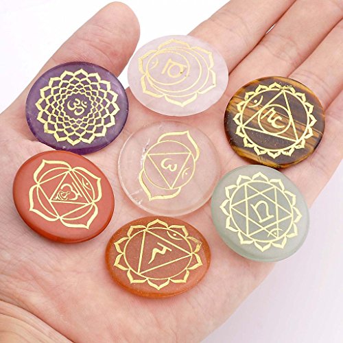 Chakra Stones-Reiki Healing Crystal With Engraved Chakra Symbols Holistic Balancing Polished Palm Stones Set of 7