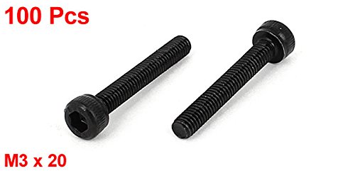 uxcell M3 x 20 Hex Bolt Socket Head Cap Machine Screws Black 100 Pcs