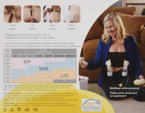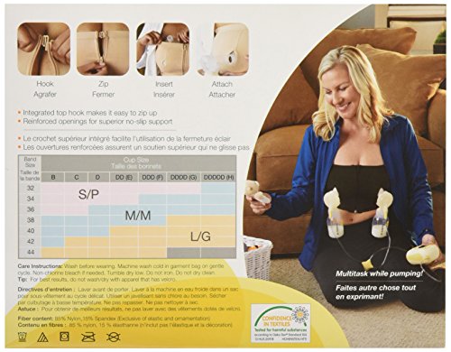 -. Feature : Adaptive Stretch: Adapts to your body to provide exceptional fit and comfort. Soft nylon, spandex blend: Feels ultra-soft next to skin / Reinforced openings: Offer superior no-slip support. Integrated top hook: Easy to zip up / Oeko-Tex® certified: Safe from harmful chemicals. Easy care: Machine wash cold in garment bag on gentle cycle. Tumble dry low. / Designed for use with all Medela double electric breast pumps that use 2-Piece Breast Shields: Including Pump In Style®, Freestyle®, Symphony®, SwingTM and Lactina® / Fiber content: 85% nylon, 15% spandex (exclusive of elastic and ornamentation)