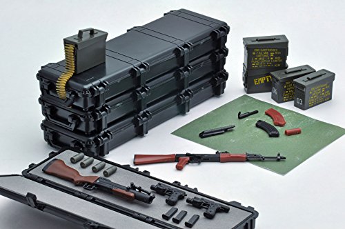 リアルさと可動フィギュアとの組み合わせを両立した1/12スケール組み立てキット「リトルアーモリー」。シリーズ初のアクセサリーアイテムとして、ライフルを収納するケースと弾薬箱のセットをモデル化します。■ライフルケース樹脂製ハードタイプのライフルケースをイメージしました。[LA001]M4A1タイプの場合だと、本体1挺+付属品が一式収納できる程度の大きさがあります。フタは開閉可能です。クッション用ウレタン(ユーザーカット式)付属。■弾薬箱米軍で長年使用されている金属製の弾薬箱をイメージしました。[LA006]M240Gタイプに付属する7.62mmベルトリンク弾が収納できます。フタの開閉も可能です。マーク用水転写デカール付属。※製品には銃器・弾薬・フィギュアなどは付属しません。※内寸(11×3×0.8cm)以上のサイズのものは収納できません。Feature