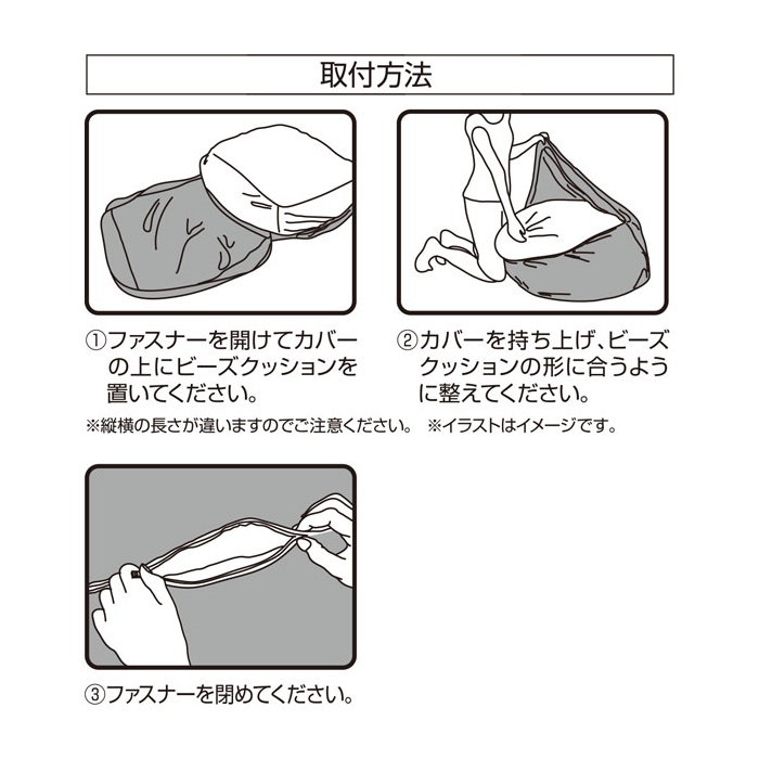 ※반드시 별매의 본체「누드 미니 비즈 쿠션 스트레치2」에 걸쳐 사용 하십시오.