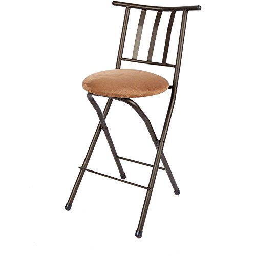 -. Title : 24" Slat-Back Folding, Counter Height Bronze Barstool, Beige