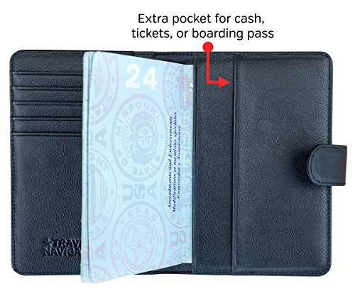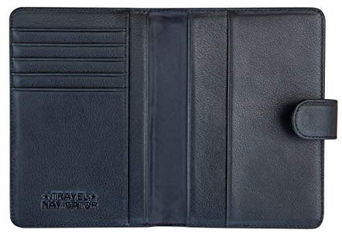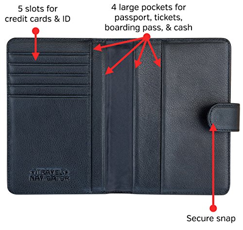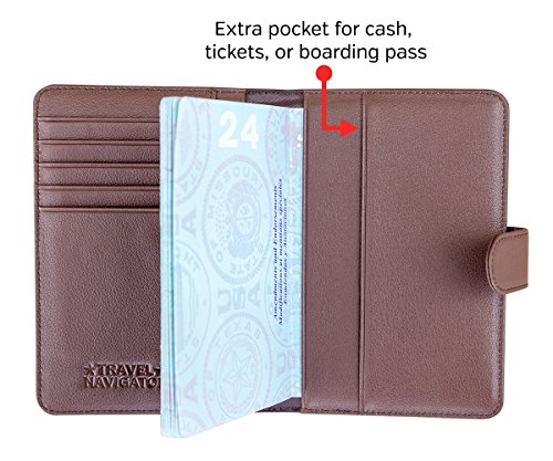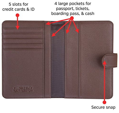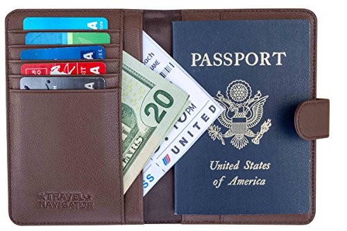 -. Brand : Travel Navigator -. Department : unisex-adult -. Feature : TRAVEL SAFELY: The snap closure helps to keep your valuables safe and protected. RFID-blocking material helps to prevent identity theft from unwanted scanning & skimming of your credit cards and passports. / CONVENIENCE AT ITS BEST: This wallet features a slim and compact design that makes it easier to carry, but still has plenty of room. You'll be able to carry two passports, several credit cards, ID, cash, tickets, boarding passes, and other documents. / QUALITY FIRST: This passport wallet is made with the highest-quality leather. It is soft, yet durable. The quality leather and stitching give it a luxurious feel. / STAY ORGANIZED: With this document organizer you can keep everything important in one handy place. It is much more than just a passport cover! It's great for men or women with its versatile, classic and stylish design. / GUARANTEED: Like all Travel Navigator products, it comes with a one-year replacement warranty. -. PackageQuantity : 1 -. ProductGroup : Apparel -. ProductTypeName : LAGE -. Size : one size -. Title : Leather Passport Wallet with RFID Blocking, Travel Document Organizer