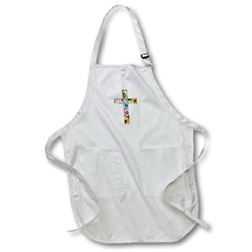3dRose Floral Christian Cross. colorful girly flower pattern religious symbol - Medium Length Apron, 22 by 24-inch, With Pouch Pockets (apr_185474_2)