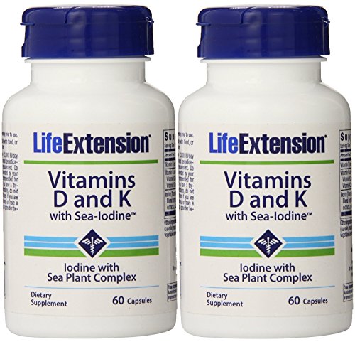 -. Feature : 2 Bottles of 60 capsules / Since it is virtually impossible to obtain adE.q.u.a.t.e vitamin D and Vitamin K from food sources, supplementation with 5,000-10,000 IU daily is required by many aging individuals. Like vitamins D and K, few Americans obtain optimal amounts of iodine. / Sea-Iodine is included in this formula to provide iodine without the harmful effects of sodium / Helps maintain youthful calcium skeletal distribution while promoting vascular health / If one is concerned enough about their health to take higher dose vitamin D, it seems absurd to miss out on the benefits of vitamin K