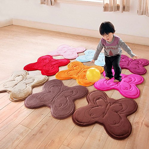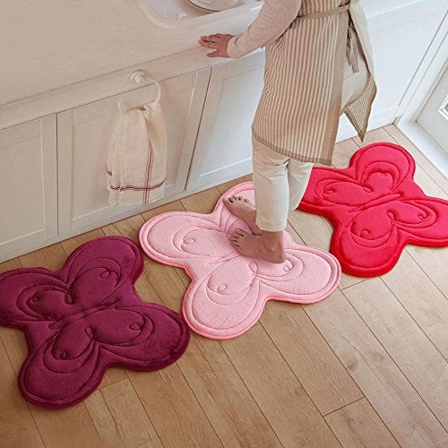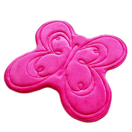 TideTex Rose Red Girl Room Kid Rug Pad, Cute Memory Foam Butterfly Design Home Decoration Area Rug, Bath Room Livingroom Bedside Footmat 1.9x1.9 Feet