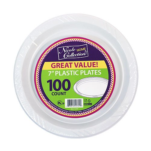 Studio : King Zak Industries, Inc. Publisher : King Zak Industries, Inc. Binding : Kitchen Product Description Nicole Home Collection White Everyday Dinnerware 7" Plastic Plate, 100 Count . High count white economical plastic plates in a variety of sizes that will give the consumer great value. Designed for all occasions, banquets, parties, upscale catering and home. Disposable. 0