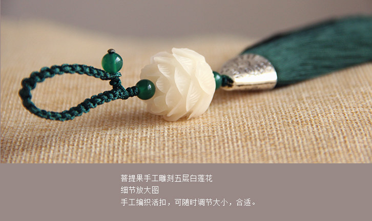 白菩提根手工雕刻莲花 汽车钥匙扣 挂件 包挂件 带流苏