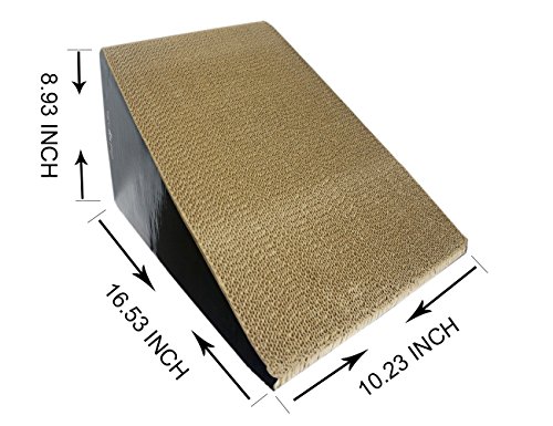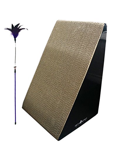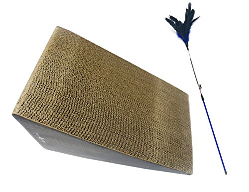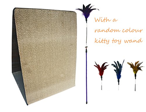 Studio : Long Tail Publisher : Long Tail Binding : Misc. Product Description Product Name: Long Tail Kitty Scratching Post in Triangle Shape with a Cat Toy Feather Interactive Cat Wand Overall Size: 16.53" x 8.93" x 10.23" Material: 100% Recyclable and made from Recycled Cardboard Product Description: 【Total Size】: 16.53" x 8.93" x 10.23" 【Color】: Black 【Features】: 1. Slope surface allows a more comfortable posture to scratch and stretch; 2. Right-angled triangle is perfect for placing on the wall side, the column side, the furniture side. 3. The cat's favorite shape of a scratching board. It's the most effective tool for protecting your furniture.; 5. Made of Premium Pressed Cardboard, the scratcher is dense and durable; 6. Natural Environmentally-friendly Products - No bad small, Safety product No harm to your pet; 7. Multi-purpose products - Scratching, Playing, Nice decorating. 8. Also including a bag of catnip, which are dried leaves for keeping your kitty healthy. 9. You will get a FREE Cat Toy Feather Interactive Cat Wand(random feather color) if you order this scratching board.