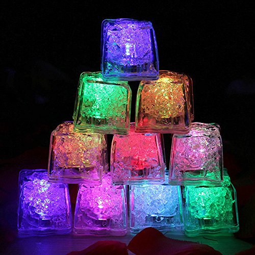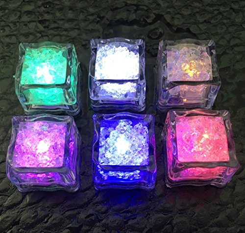 Multicolor Ice Cubes Light, Eruner Water Submersible Cube LED -24 PCS Decorative LED Liquid Sensor Ice Cubes Shape Lights Glow Light Up for Bar Club Wedding Party Champagne Tower (24 Pack, Cube)