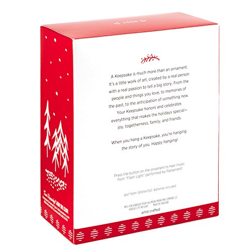 Press the button on the ornament to hear music from "Flash Light" performed by Parliament! This Hallmark Keepsake Ornament measures 3.3 x 4.2 x 1.8 inches and comes in a 4 x 5 x 2 gift box.