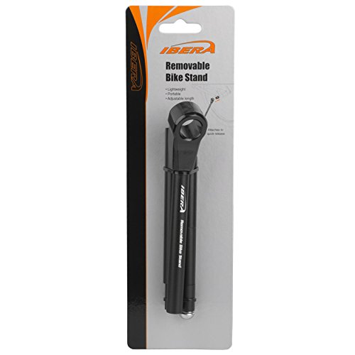 Designed especially for high-end bike riders who need to stand their bike freely but don't want a fixed stand. Compatible with 26 inch and 700 C bike wheel sizes. This portable minimalist, lightweight stand attaches or detaches instantly to the bike's rear wheel quick release, providing stability anywhere. Additional Features: For 26" and 700 C wheel size bikes. Easy Storage. Attaches to QR! Stand has 3 Adjustable Lengths (small spacers). Removable and Portable Stand. Stand Available in Black Only. Stand Compatibility: For Bike Wheel Sizes: 26" and 700C. Material: Stand: Aluminium. Color: Black. Size: Stand: 3 Different Lengths 15.35 in / 14.96 in / 14.57 in (39 cm / 38 cm / 37 cm). Diameter: Stand: 0.47 in (1.2 cm). Weight:Stand: 4.76 oz (135 g). Item No.: IB-ST7.