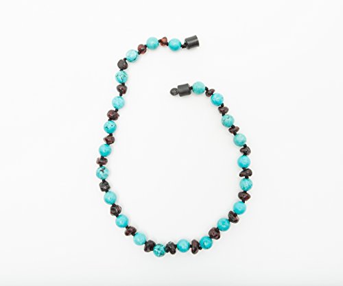 -. Binding : Baby Product -. Brand : Healing Hazel -. Color : Blue -. EAN : 0859722001631 -. Feature : Handmade with 100% certified Baltic amber / Must be in contact with the skin / May be in contact with plain water, however it is preferable to remove it before bathing or swimming to increase its lifespan / This product has a safety release and is accredited by the Consumer Product Safety Commission / You should be able to run two fingers along your child's neck under the necklace -. IsAdultProduct : 0 -. Label : Healing Hazel -. Manufacturer : Healing Hazel -. MPN : 23315 -. PartNumber : 23315 -. ProductGroup : Baby Product -. ProductTypeName : BABY_PRODUCT -. Publisher : Healing Hazel -. Size : 12/13' inches -. Studio : Healing Hazel -. Title : 100% Certified Balticamber Pop Clasp Children Necklace with Gemstones, Turquoise, ~12/13'' -. UPC : 859722001631
