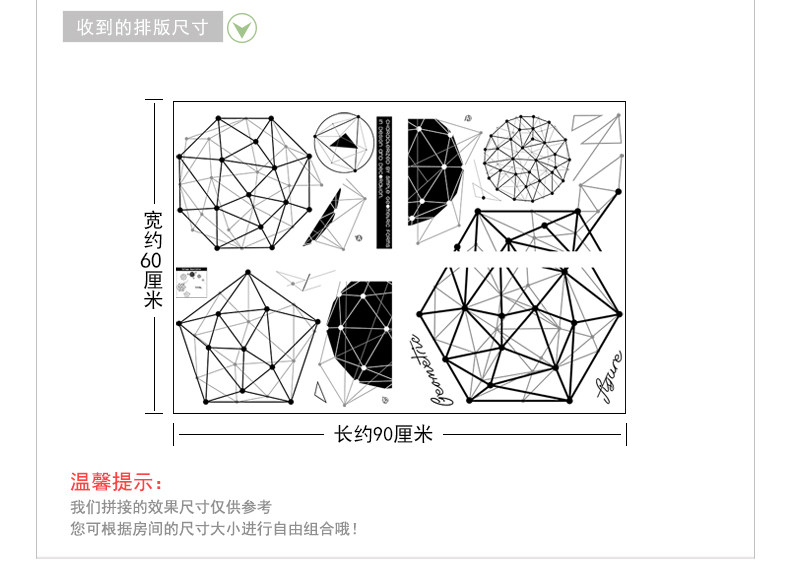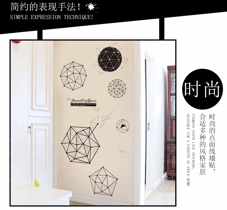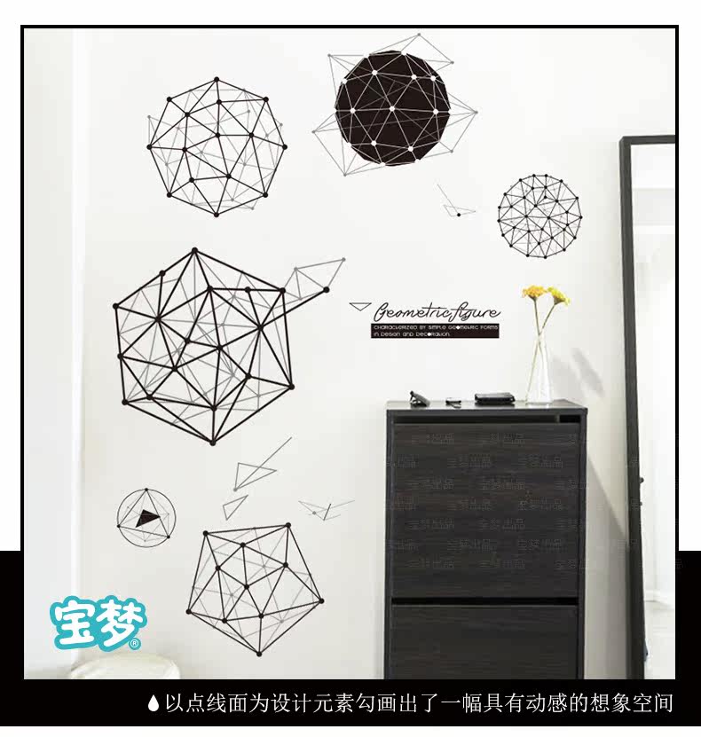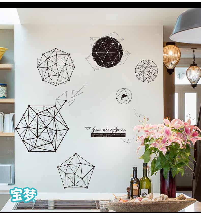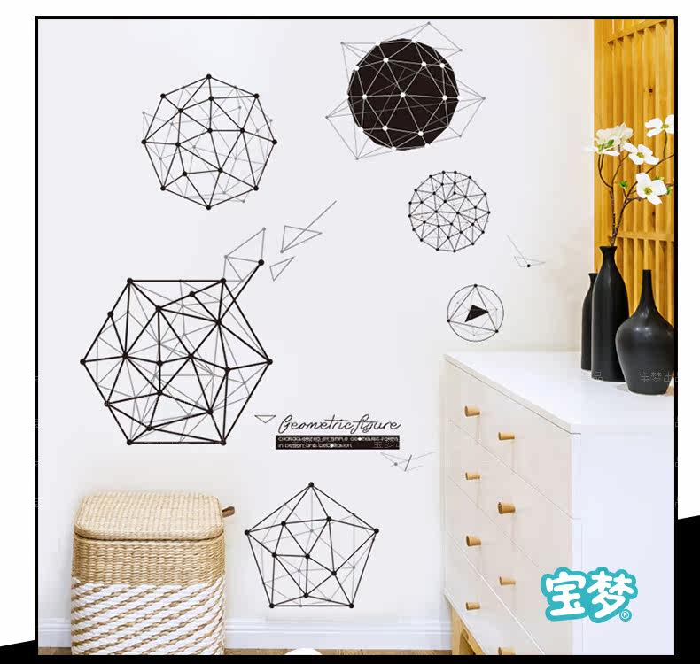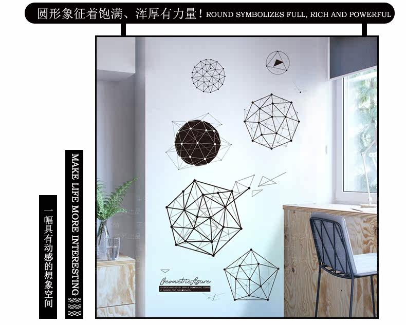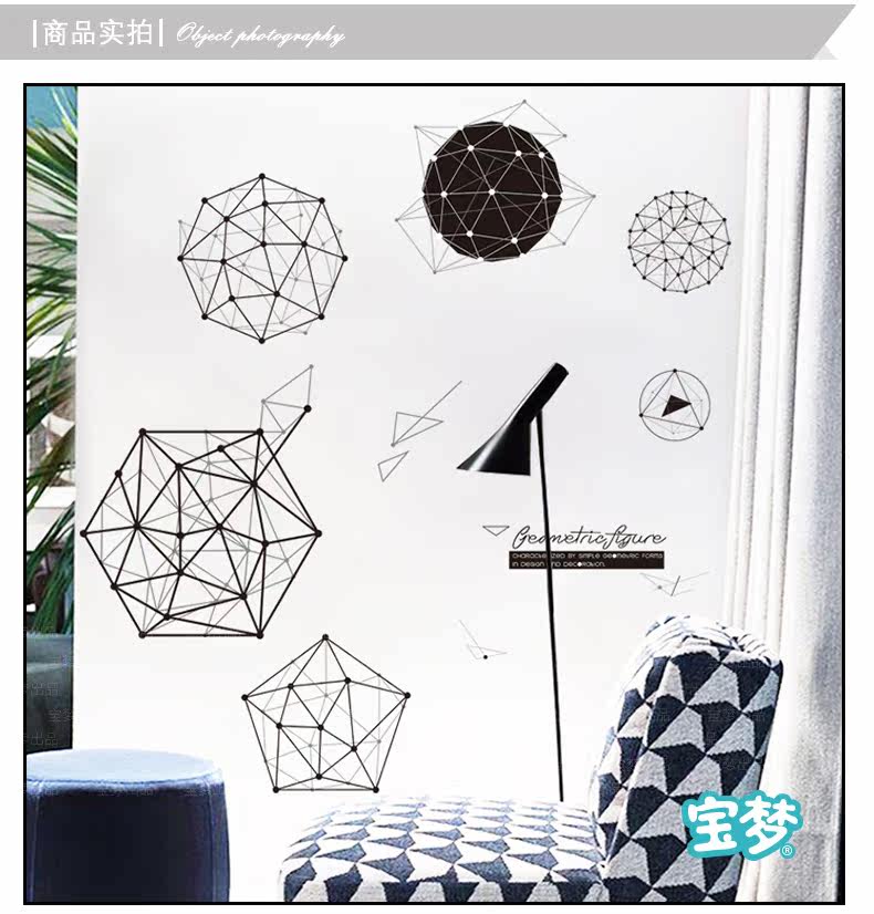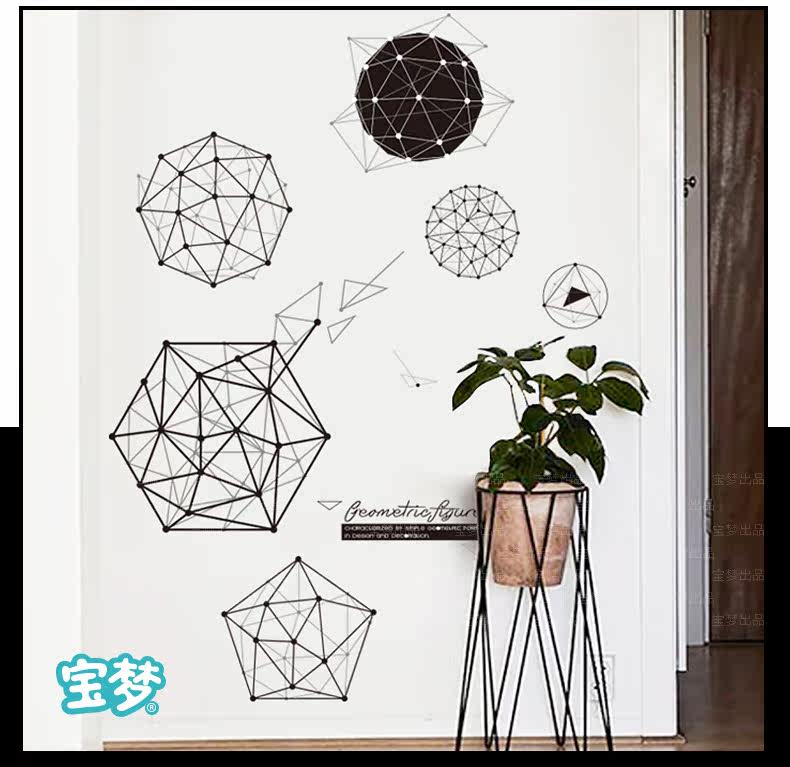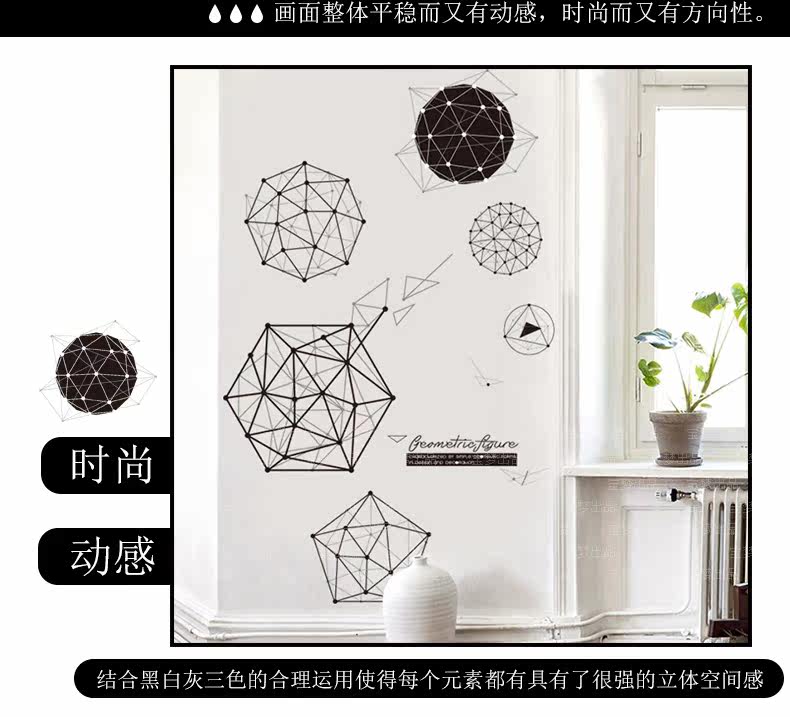创意几何立方体图案装饰品墙贴纸个性时尚现代客厅卧室书房壁贴画