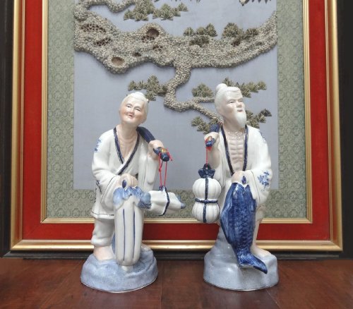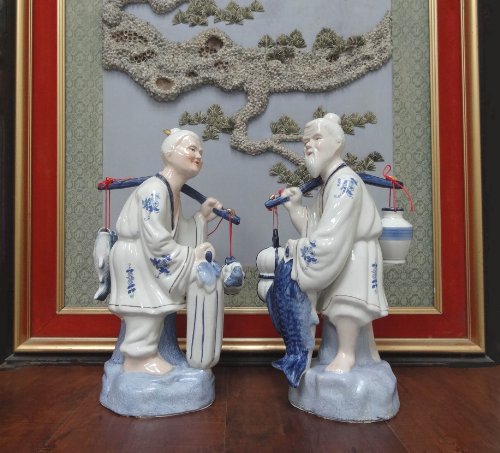 • FISHERMAN OLD CHINESE COUPLE STATUE FIGURINE 15"H, 13157S BY ACK