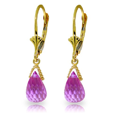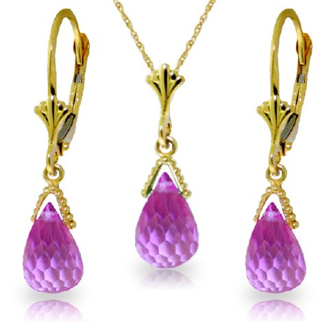 -. Title : 14k Solid Gold Jewelry Set: Briolette Pink Topaz Pendant Necklace and Dangle Earrings