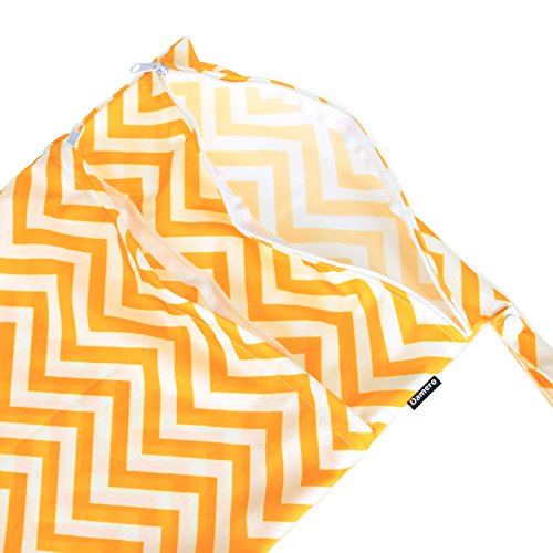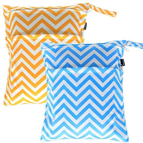 Damero 2pcs Pack Cute Travel Baby Wet and Dry Cloth Diaper Organizer Bag( Medium, Yellow Chevron+Blue Chevron)