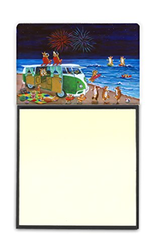 Caroline's Treasures Corgi Beach Party Volkswagen Bus Fireworks Sticky Note Holder, Multicolor (7317SN)