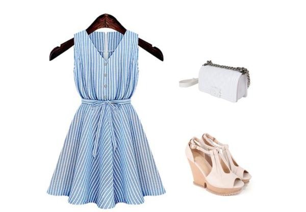 ★夏らしく涼しげなブルーストライプ・ワンピースです♪