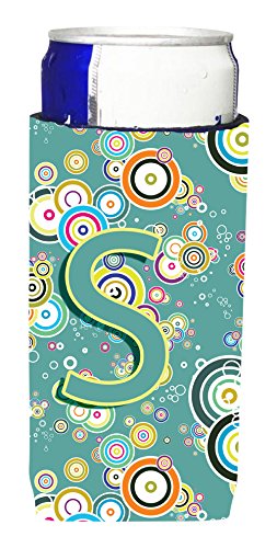 Letter S Circle Circle Teal Initial Alphabet Ultra Beverage Insulators for slim cans CJ2015-SMUK
