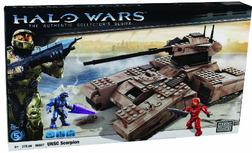 -. Binding : Toy -. Brand : Mega Bloks -. EAN : 0065541968073 -. Feature : The Scorpion Main Battle Tank is the UNSC most powerful mobile weapons. / It has a pivoting turret with opening hatch and moving treads / The Scorpion set includes 1 UNSC Spartan, 1 UNSC Red Spartan and 1 Covenant Elite Guard / Set includes over 250 pieces / Joining the battle are fully articulated miniature figurines of the game's key warriors -. Label : Mattel -. LegalDisclaimer : No returns. -. Manufacturer : Mattel -. Model : 96807U -. MPN : 96807U -. PackageQuantity : 1 -. PartNumber : 96807U -. ProductGroup : Toy -. ProductTypeName : TOYS_AND_GAMES -. Publisher : Mattel -. SKU : 30316655 -. Studio : Mattel -. Title : Mega Bloks UNSC Scorpion -. UPC : 065541968073