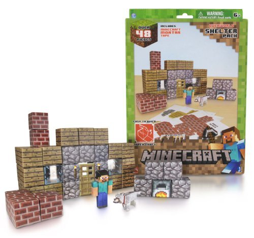 -. Binding : Toy -. Brand : Unknown -. EAN : 9899999631491 -. Feature : After conquering the video gaming world, the Minecraft family is now invading the heart land of your daily life / Each Minecraft Papercraft Kit comes with multiple easy-to-build Minecraft themed items, at roughly 1/16 scale. / The Overworld Shelter Pack contains the following papercraft items: 1 Steve, 1 Tame Wolf, 2 Furnace, 2 Wooden Door, 18 Wooden Plank Block, 6 Brick Block, 2 Glass Block, 12 Cobblestone Blocks, 1 Minecraft Mortar Paper Tape; Stickers Included / Officially licensed products. Don't disappoint your loved one with counterfeit products / For ages 6+ -. IsAdultProduct : 0 -. Label : Jazwares -. Manufacturer : Jazwares -. MPN : BCC9J1R1 -. PartNumber : BCC9J1R1 -. ProductGroup : Toy -. ProductTypeName : TOYS_AND_GAMES -. Publisher : Jazwares -. Studio : Jazwares -. Title : Overworld Shelter Pack: Minecraft Papercraft Kit Series