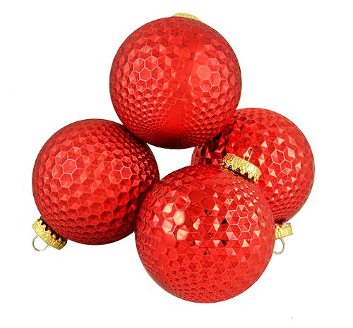 Barcana 4 Count Red Prism Textured Shatterproof Christmas Ball Ornaments, 2.75"