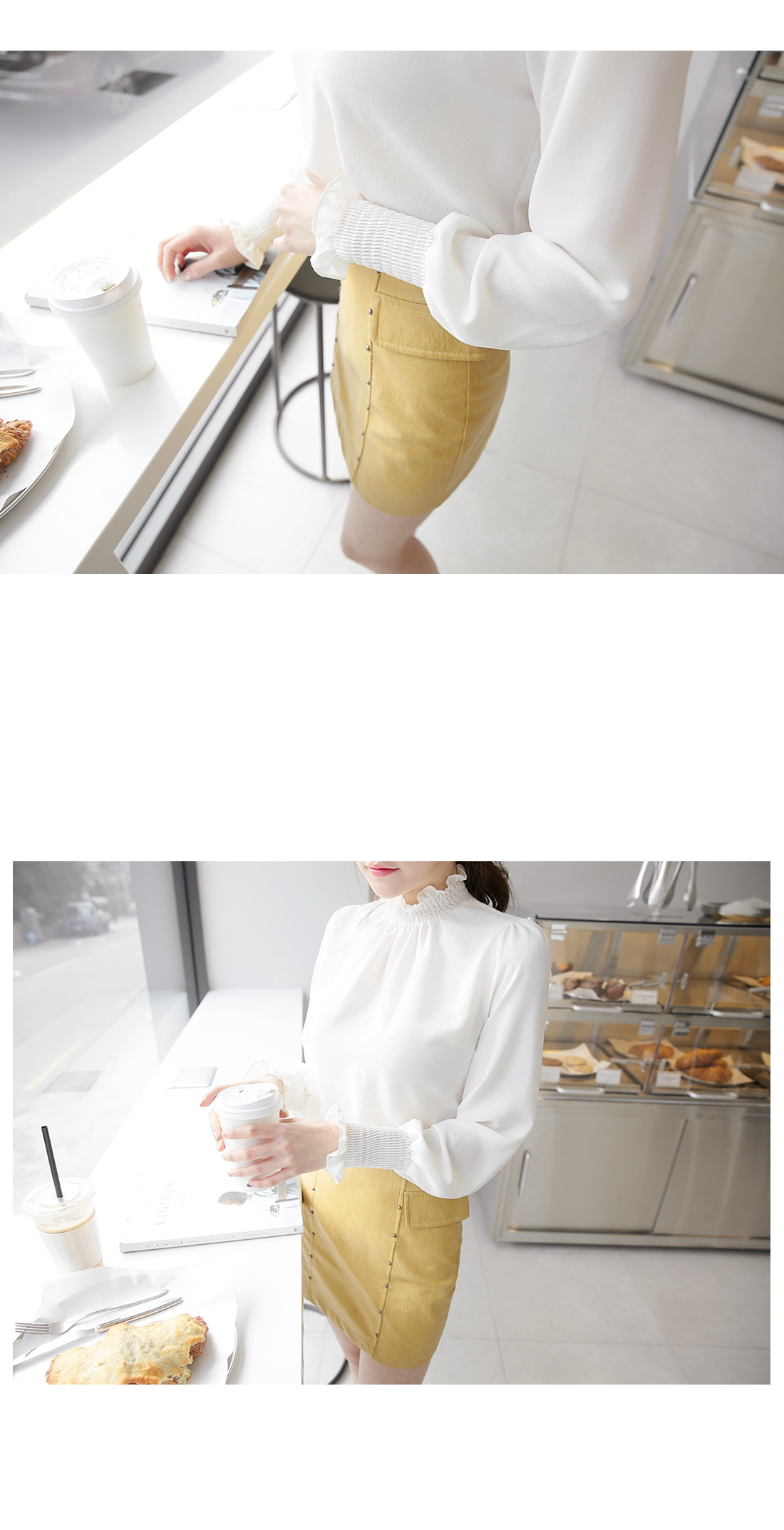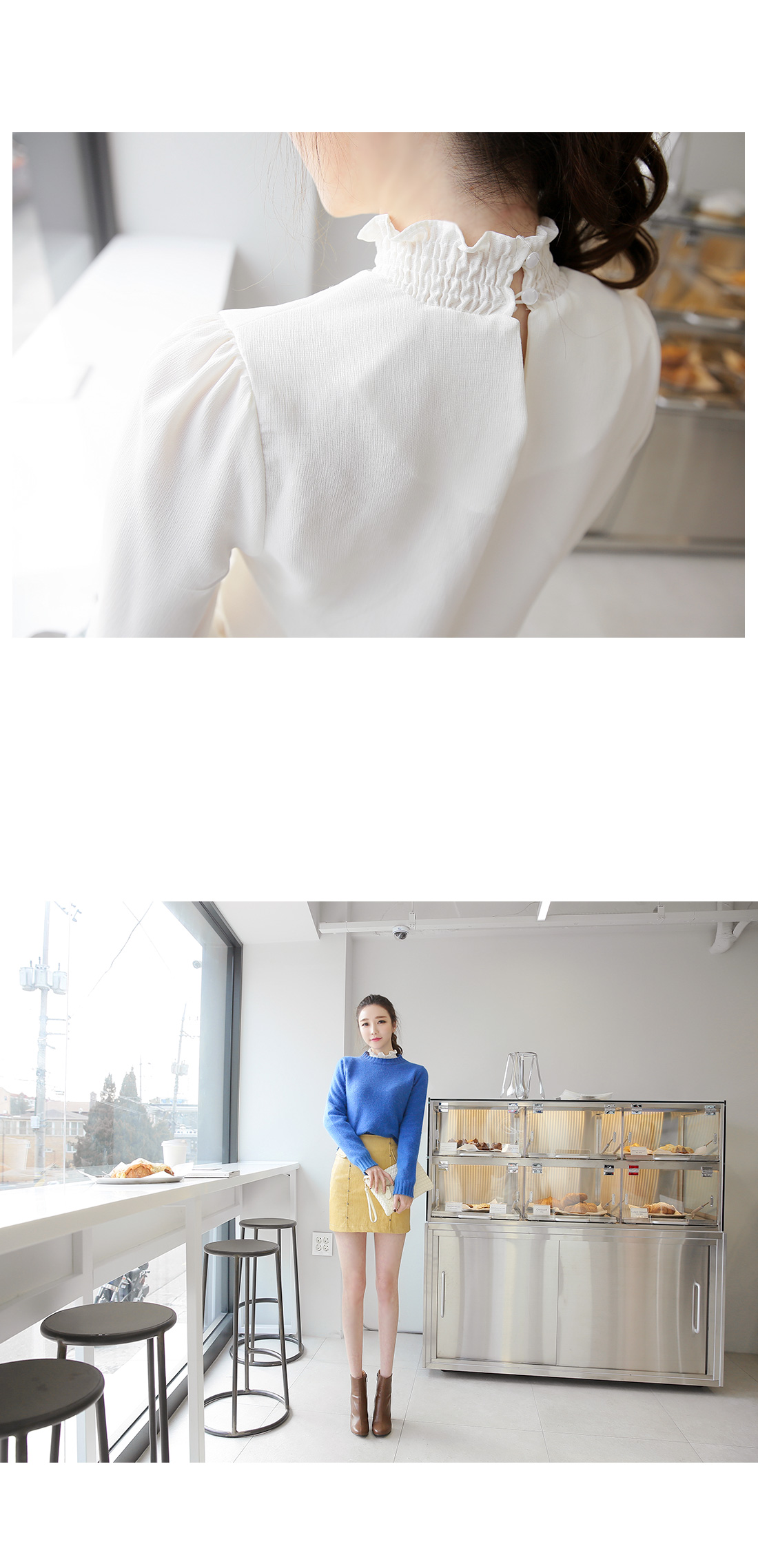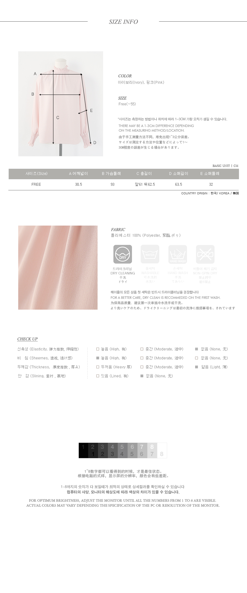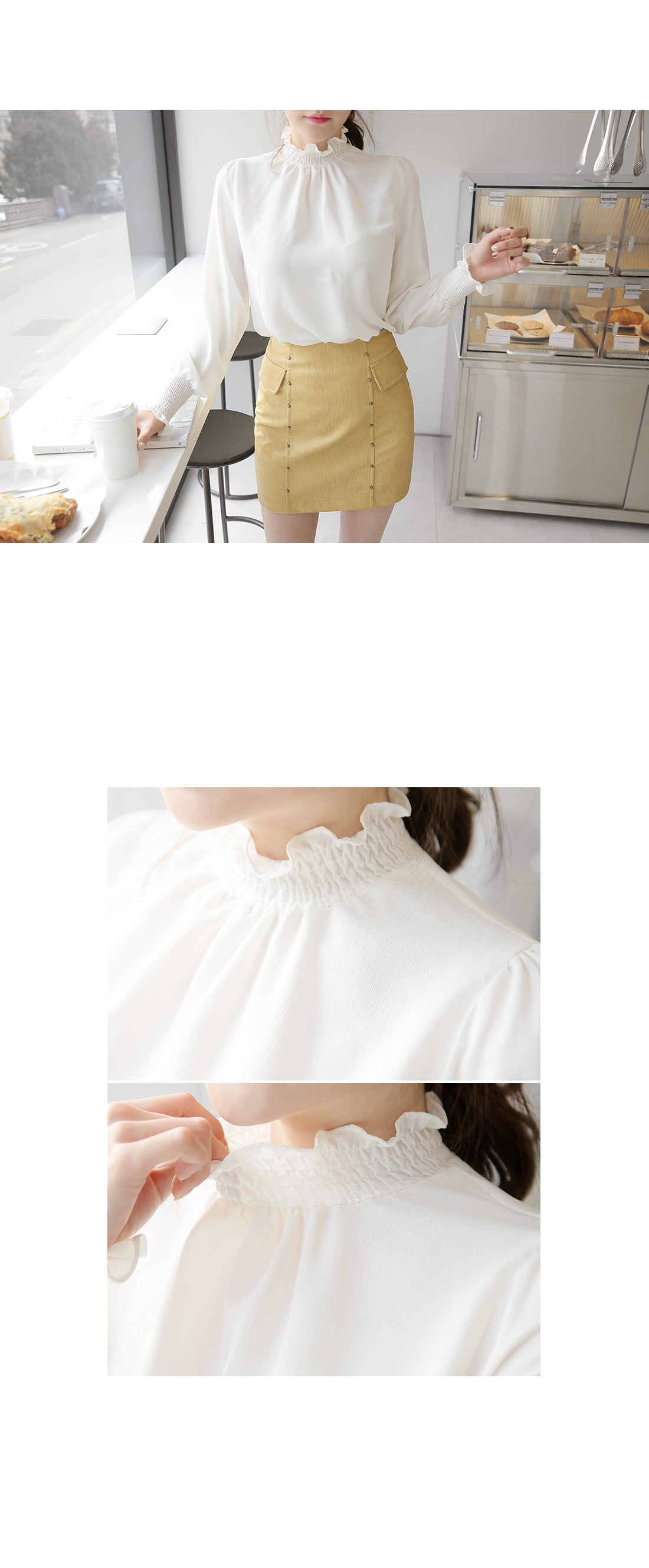 레이어드로 활용도가 높은 프릴 포인트의 쉬폰블라우스에요! 하늘하늘한 쉬폰 소재감으로 여성스러운 무드를 연출해 주구요 넥라인과 소매의 프릴포인트가 로맨틱함을 더해주는 블라우스에요~ 군더더기없이 심플한 스타일로 레이어드룩에 활용하기 좋구요 단품으로 입어도 손색없는 아이템이에요! 스커트는 물론 팬츠에 매치해도 손색없이 어울리는 쉬폰블라우스에요^^