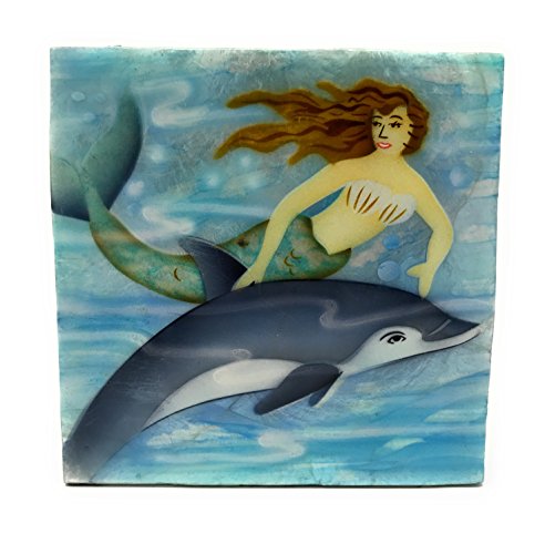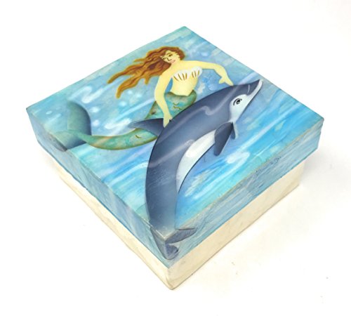 Mermaid Swimming with Dolphin Capiz Shell Keepsake Box By Kubla Craft, 4 Inches X 4 Inches