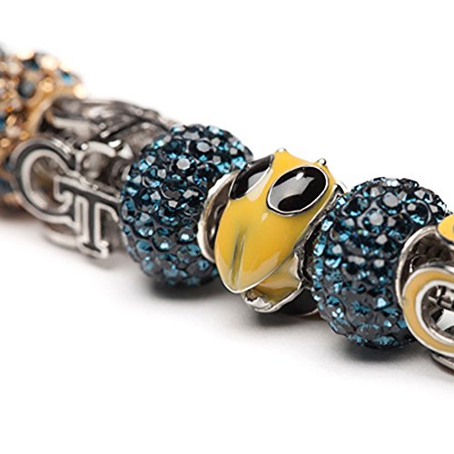 This Georgia Tech charm bracelet will make the perfect gift for any fan, student or alumni! Three stainless steel GT charms are made of stainless steel and six Austrian crystal bead charms in gold and navy. Product lifetime guarantee! Officially licensed by Georgia Tech University. Ships within 24-48 business hours.