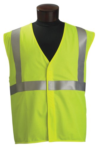 Flame Retardant material is treated with a chemical substance that imparts flame resistance on a fabric. Meets the requirements for NFPA 701. 100 percent polyester. Machine washable. Hook-and-loop front closure. 360 degree visibility with reflective tape. Meets ANSI/ISEA Z107-2004 Class 2 Standards.