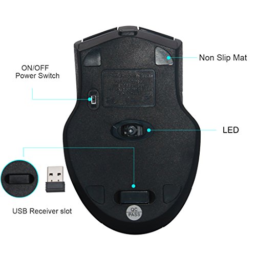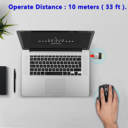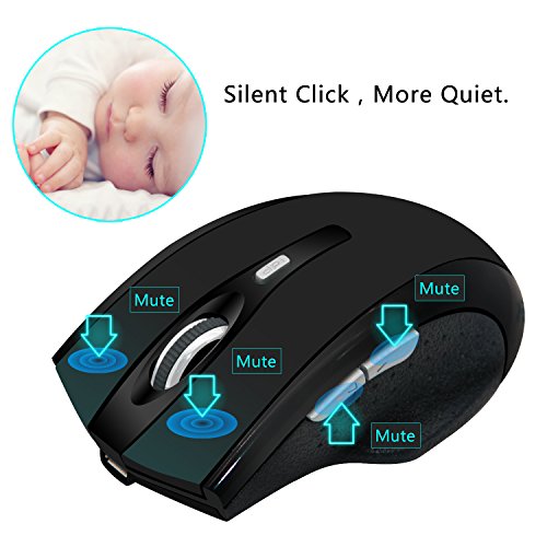 -. Feature : BUILT-IN BATTERY:Built-in battery,easy to charge by micro usb cable,no more need for extra AAA battery.please please keep the mouse power switch in "ON" position when charging . / SILENT CLICKS WIRELESS MOUSE:Special soundless design for the right and left buttons, you can use it in public places such as offices, libraries, dormitories where you do not want disturb others. / WIDE COMPATIBILITY :Compatible with most system including Windows, Mac and Linux. Fit for Notebook, PC, Laptop, Computer, Macbook and other device.Note: NOT compatible with Apple iPhone, iPad ,MacBook 2016 or Macbook Air. / 6 BUTTONS: scroll wheel, page forward, page backward, left button, right button, DPI key. Can click the side (forward/backward) buttons to go to the next or previous page. / QUALITY GUARANTEE:One year quality warranty from Tsmine