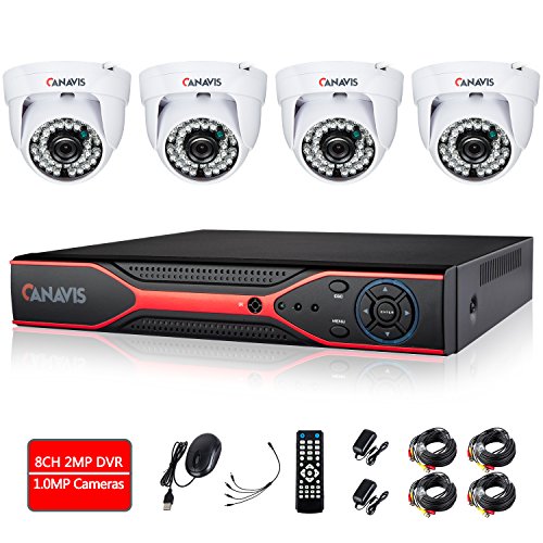 Home Security Camera System, CANAVIS 8 Channel DVR System with 4 CCTV 720P 1.0 Megapixel 1280TVL Night Vision Cameras Video Recorder