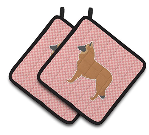 Caroline's Treasures Belgian Shepherd Checkerboard Pink Pair of Pot Holders BB3661PTHD, 7.5HX7.5W, Multicolor