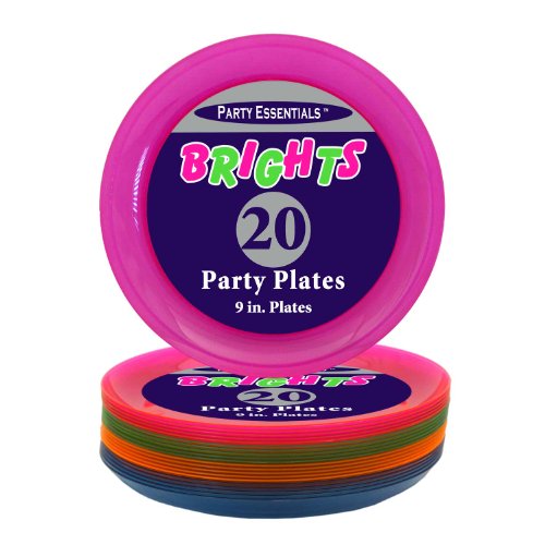 Party Essentials N92090 Brights Hard Plastic Round Buffet/Luncheon Party Plate, 9" Diameter, Assorted Neon (Case of 240)